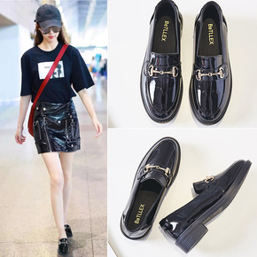 小皮鞋女2022春秋季新款单鞋韩版百搭休闲黑色平底...