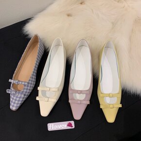 蝴蝶结格子单鞋女软皮2022春新款百搭浅口平底乖乖...