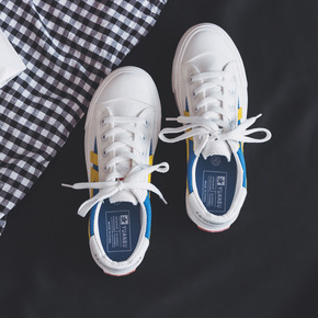 春新款低帮帆布鞋女平跟底学生白色原宿ulzzang...