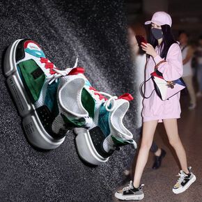 原宿风运动鞋港风2021新款女韩版百搭厚底老爹鞋子...