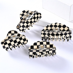 黑白格子抓夹女后脑勺发夹盘发夹子高级感气质优雅发抓...