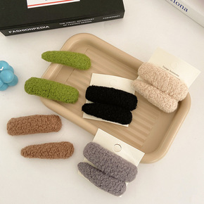 韩国ins风网红秋冬新款毛毛几何设计感简约BB夹侧...