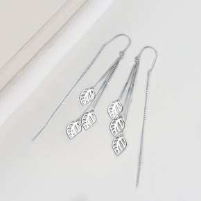 s925纯银耳线女时尚四叶草流苏耳环日韩简约防丢气...