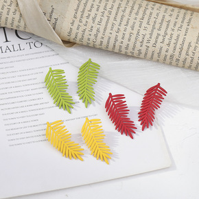 韩版森系个性不对称树叶耳饰耳钉简约喷漆彩色百搭气质...