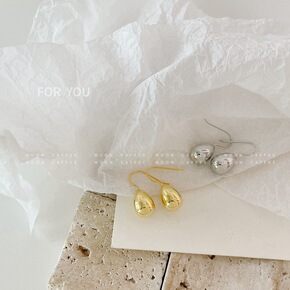 小银蛋系列水滴法式简约百搭欧美金属气质高冷时髦耳环...
