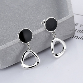 云潮轩S925纯银圆环黑色滴胶耳饰简约小众设计冷淡...