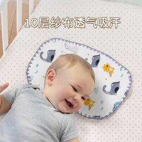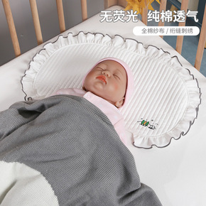 朗骏新生儿枕头纯棉纱布初生婴儿平枕夏季透气小枕巾全...
