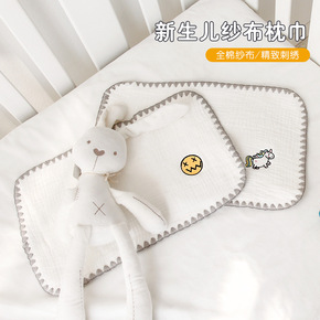 新品ins风宝宝棉纱布枕头 婴儿透气柔软枕巾 手工...