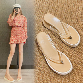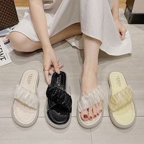 网红透明凉拖鞋女夏季外穿厚底防滑皮带扣一字沙滩水晶...