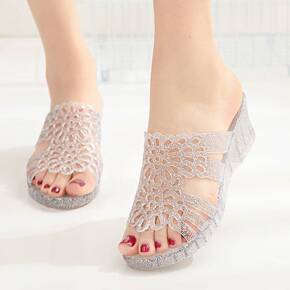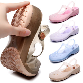 夏季新款妈妈软底凉拖鞋女果冻鞋坡跟沙滩洞洞鞋旗袍水...