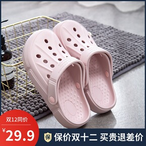 新款护士洞洞鞋女夏季沙滩鞋情侣款孕妇凉拖鞋男果冻花...