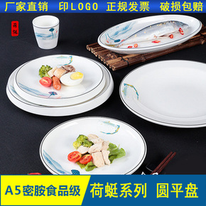 A5密胺浅盘仿瓷圆形平盘餐厅菜盘塑料饭店餐具商用圆...