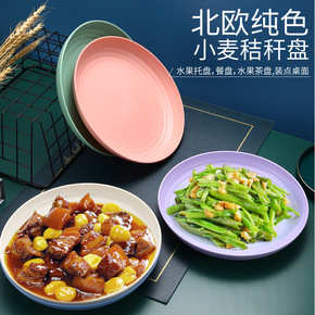 23CM塑料盘子家用菜盘可微波炉创意小麦秸秆餐具北...