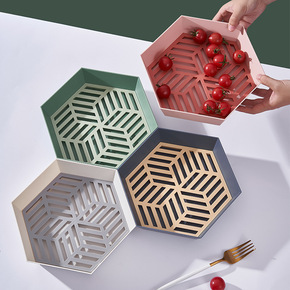 双层水果盘客厅茶几家用简约塑料网红办公沥水盘茶杯瓜...
