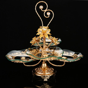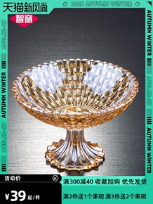 创意水晶玻璃水果盘家用客厅茶几摆件欧式高脚零食干果...