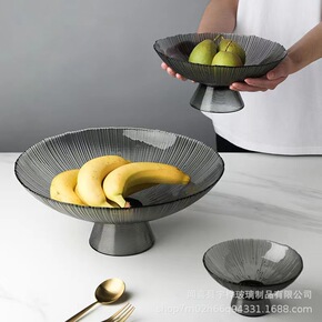 轻奢高脚玻璃水果盘ins风客厅家用茶几创意个性简约...