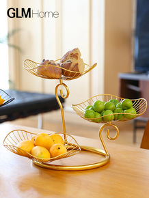 现代简约懒人双层水果篮创意铁艺客厅零食篮子拆装金属...