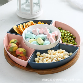 家用客厅茶几干果糖果盘 四格小吃点心收纳盘 创意水...
