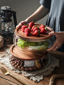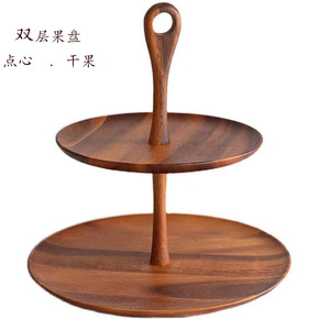水果盘创意双层现代木质客厅多层零食网红水果盘木制两...