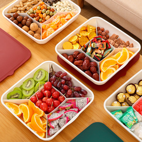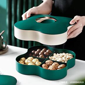 轻奢干果盒茶几分格带盖干果盘客厅简约现代坚果零食盘...