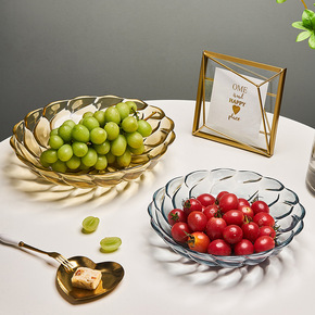 北欧轻奢玻璃水果盘创意简约网红客厅家用茶几干果瓜子...