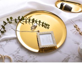 北欧风格 金色收纳盘 金属圆形托盘 彩虹色置物水果...