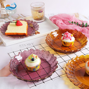 海晶玉北欧创意雪花边玻璃餐盘干果盘家用简约水果盘零...