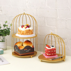 铁艺双层金色鸟笼甜品台展示架摆件茶歇摆台蛋糕托盘糕...