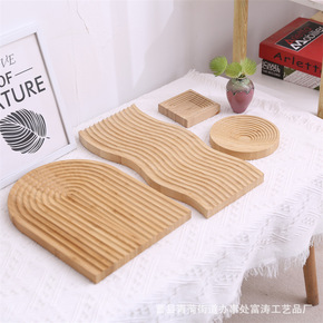 北欧木质面包盘水波纹下午茶点心盘美食拍照道具木托盘...