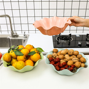 欧式大号荷叶边水果盘 塑料家用客厅桌面零食糖果盒 ...