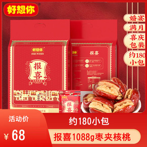 好想你报喜1088g枣夹核桃零食婚庆喜糖散装结婚专...