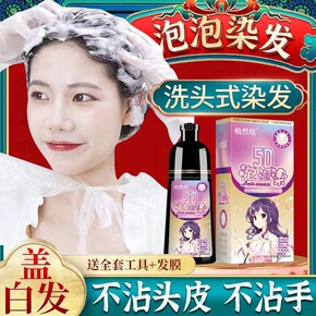 泡泡染发剂奶茶色2022流行色植物黑茶自己在家不伤...