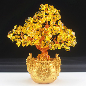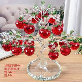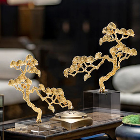 现代轻奢办公室摆件家居饰品新中式客厅酒柜迎客松水晶...