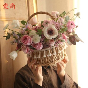 柳编圆形藤编花边花篮网红仙女系列花艺课插花篮碎花韩...