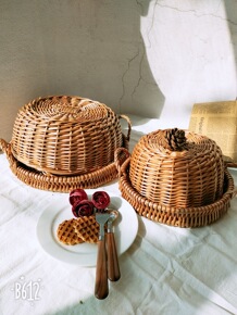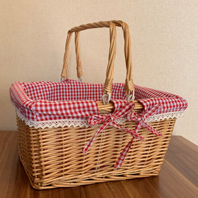 柳编 藤编 带盖户外野餐篮子购物礼品篮竹篮保洁篮收...
