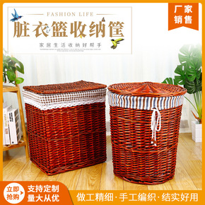 收纳箱脏衣服收纳盒家居储物篮大号整理箱柳编带盖收纳...