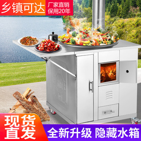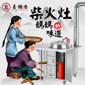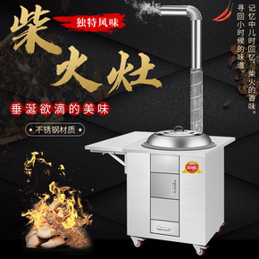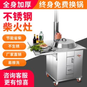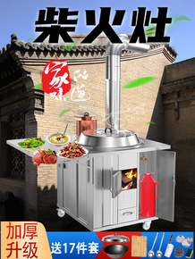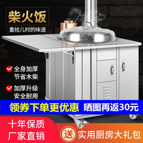 柴火灶家用烧木柴大锅不锈钢柴火炉室内移动小灶台柴火...