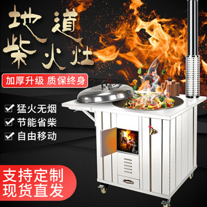 加厚农村柴火灶烧木柴移动不锈钢室内无烟大锅灶柴火炉...