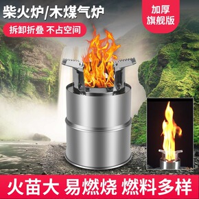 加厚柴火炉自驾野餐炉具不锈钢家用烧柴灶木炭酒精炉露...