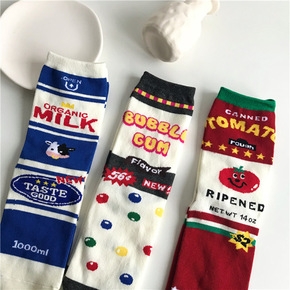 日系原宿风曲奇番茄牛奶袜子男女中筒潮网红款情侣滑板...