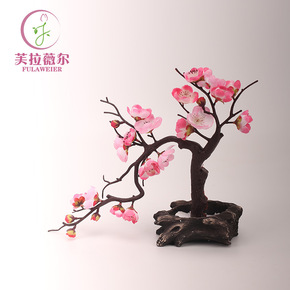 仿真桃花工程景观桃花枝仿真梅花枝假树枝婚庆装饰品假...