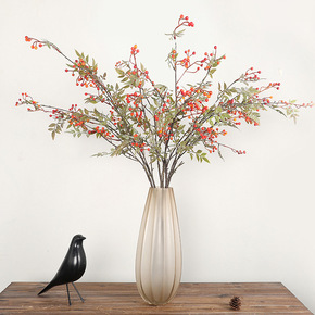 仿真三头凤尾花树枝落地家居装饰摆件花束红果小清新混...