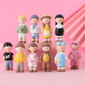新款嘟嘴女孩简约北欧树脂摆件小孩萝莉工艺品蛋糕店客...