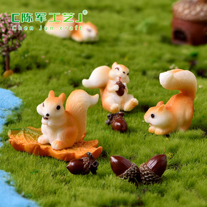 微景观多肉植物园艺装饰 可爱松鼠坚果松果屋枫叶 树...