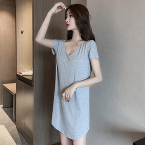 夏季睡裙女莫代尔棉薄款短袖睡衣冰丝性感露背春秋孕妇...