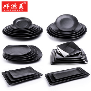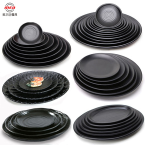 仿瓷密胺餐具盘子黑色塑料凉菜碟火锅菜盘餐盘烤肉碟子...