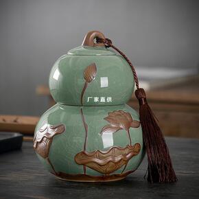 红龙葫芦茶叶罐陶瓷密封罐大号双层普洱茶盒半斤装存储...