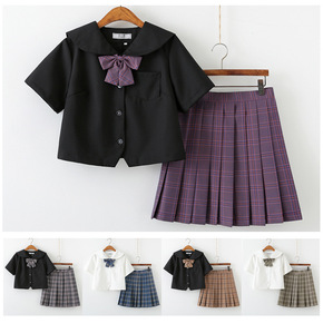 水手服学院风套装JK制服札幌襟白无本格子百褶裙基础...