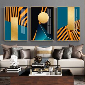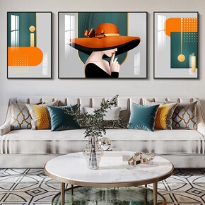 客厅装饰画现代沙发背景墙三联挂画轻奢橙色抽象几何样...