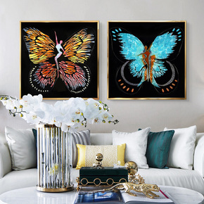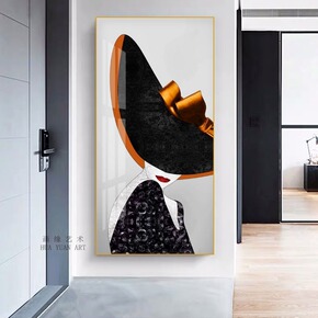 后现代玄关装饰画创意人物抽象大尺寸落地画羽毛少女客...